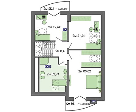 В этом проекте загородного дома есть камин в гостевой, сан узлы конечно Вы можете разделить, так как в любое типовое решение можно вносить изменения. Для детального ознакомления отправим Вам на электронный адрес линейные размеры этого проекта. Будут вопросы пишите и з >>>