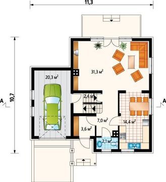 Яркий двухэтажный коттедж с цокольным этажом 4M3579