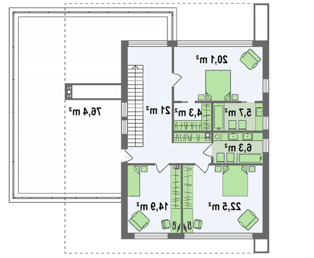 • 4M609g Загородный двухэтажный коттедж с плоской кровлей