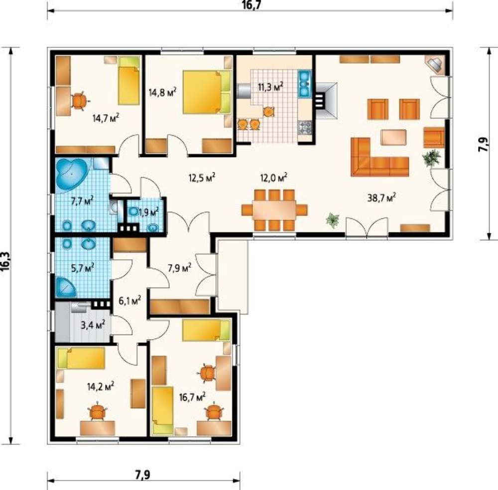 • 4M3699a Загородный одноэтажный дом в форме буквы Г